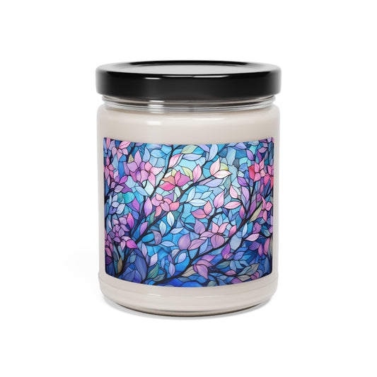Trans Pride Forest Candle - Watercolor Trees with Stained Glass Effect | Scented Soy Candle, 9oz