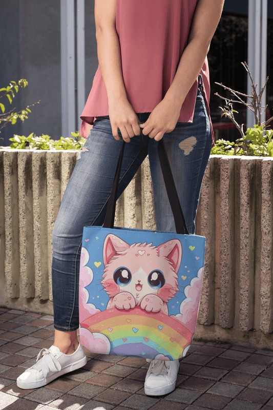 Cute Kitten With a Rainbow - Tote Bag