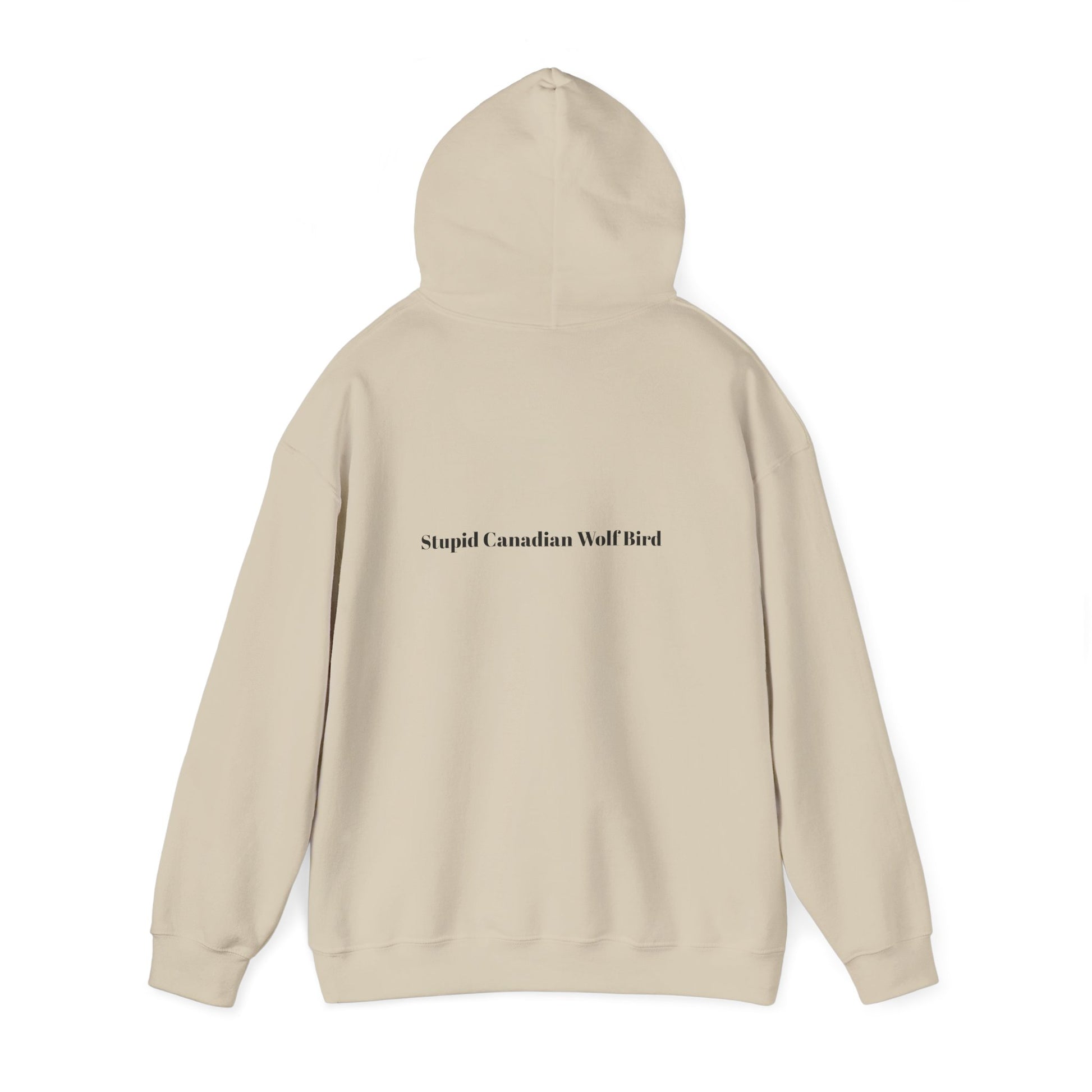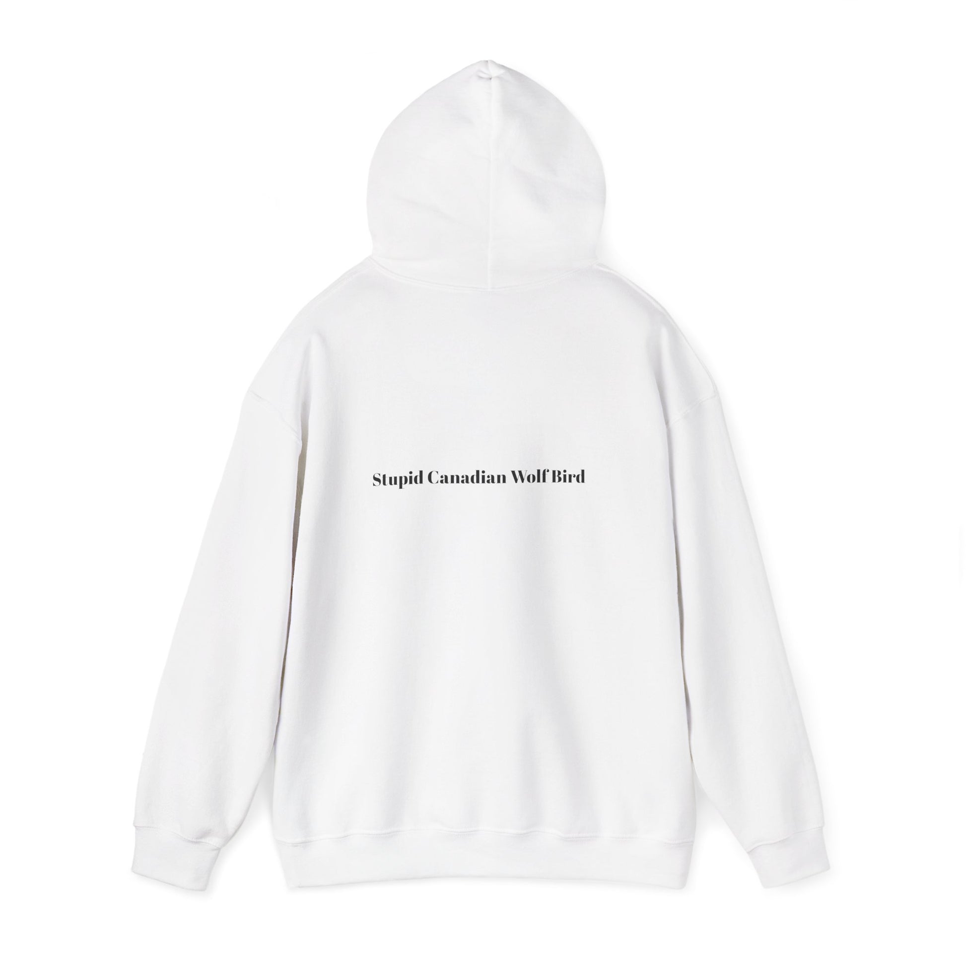 “Stupid Canadian Wolf Bird” is printed on a classic hoodie.