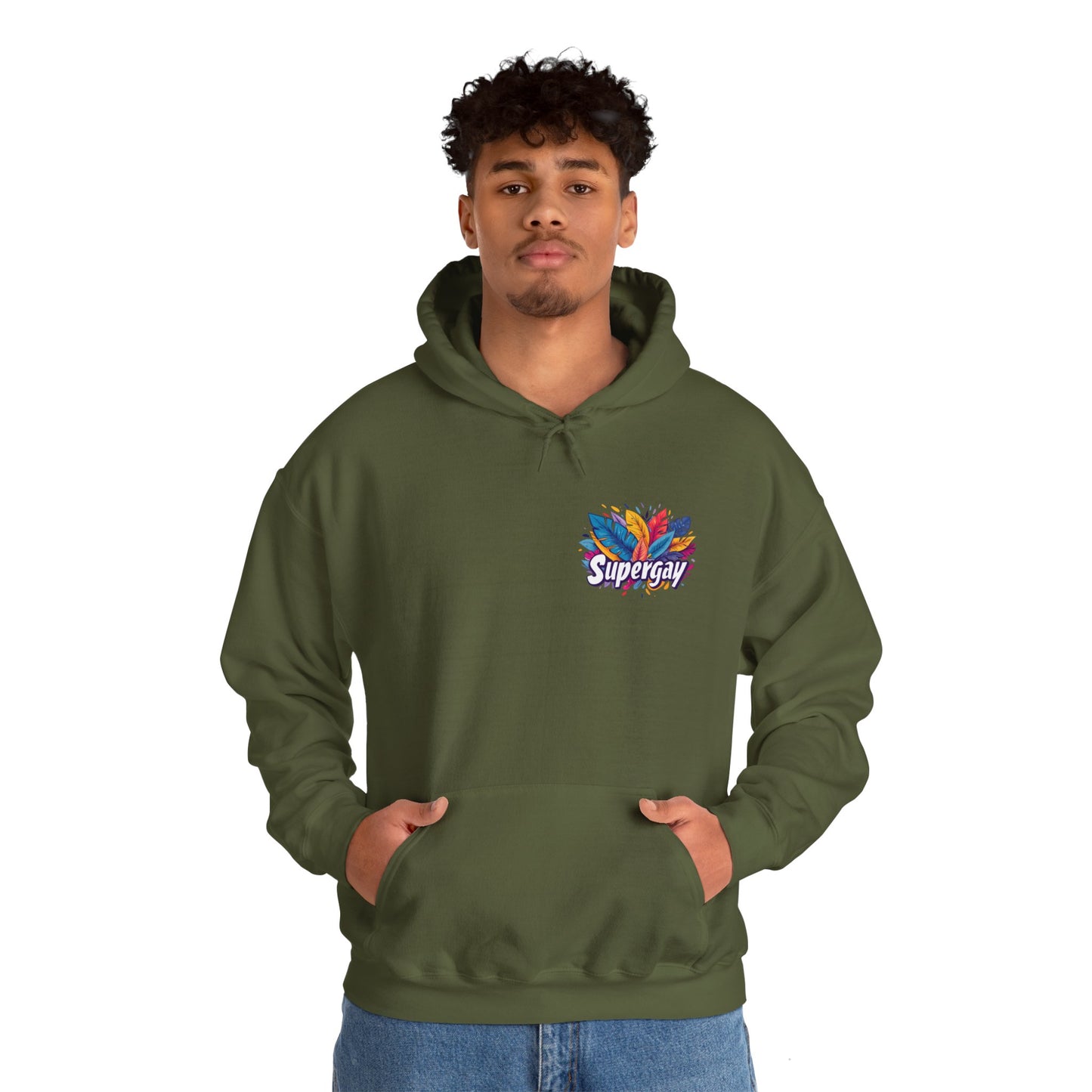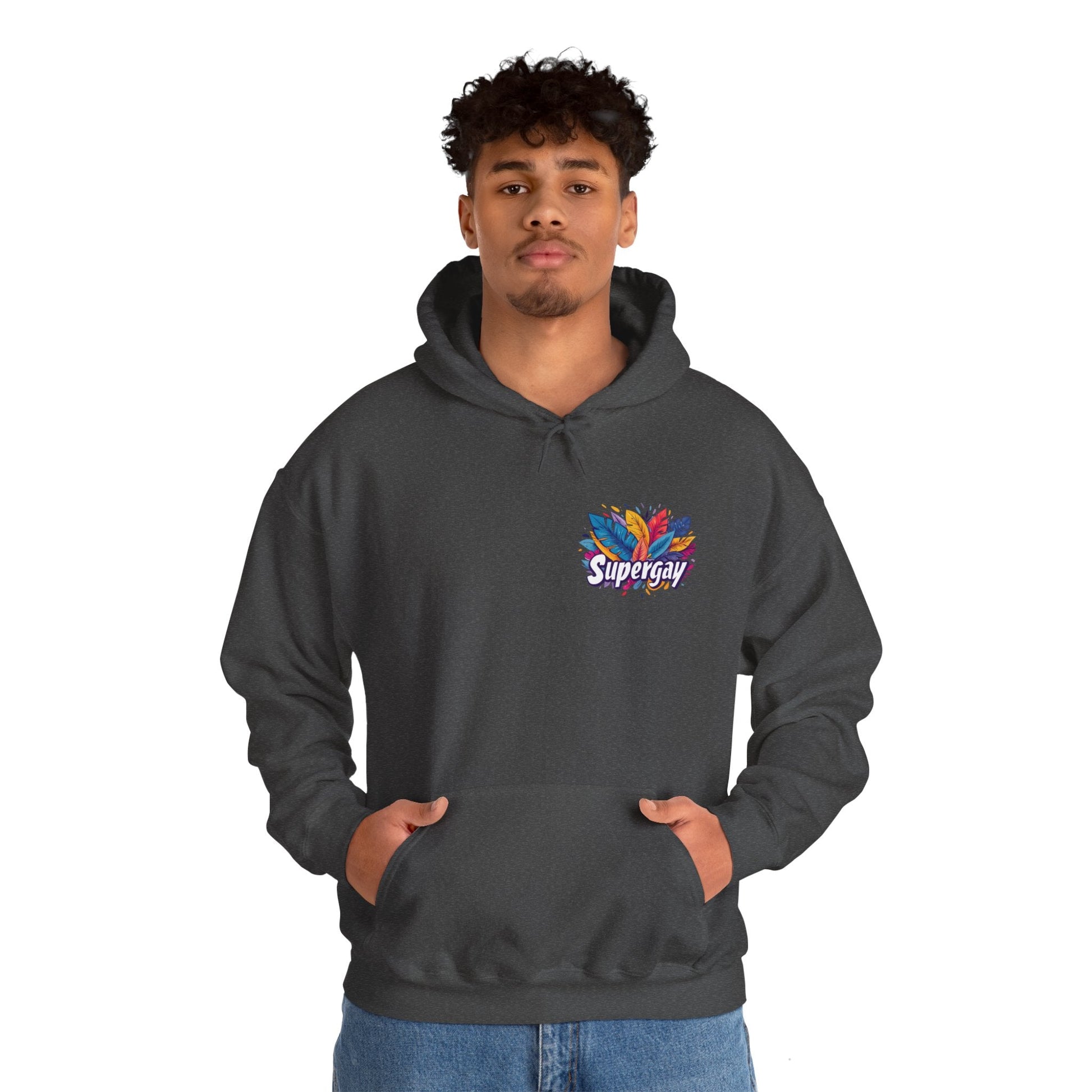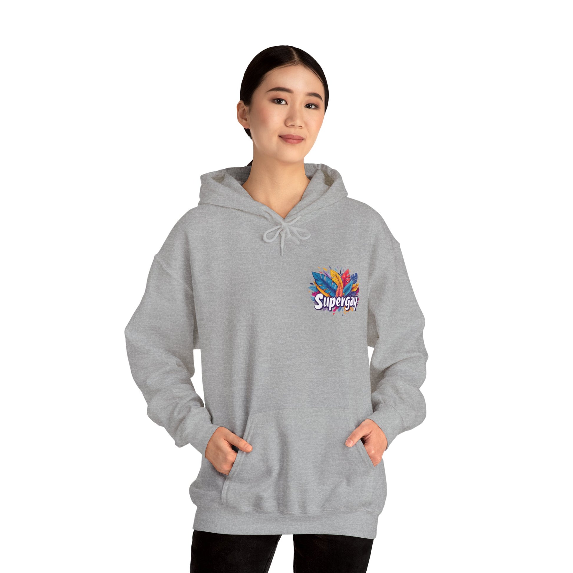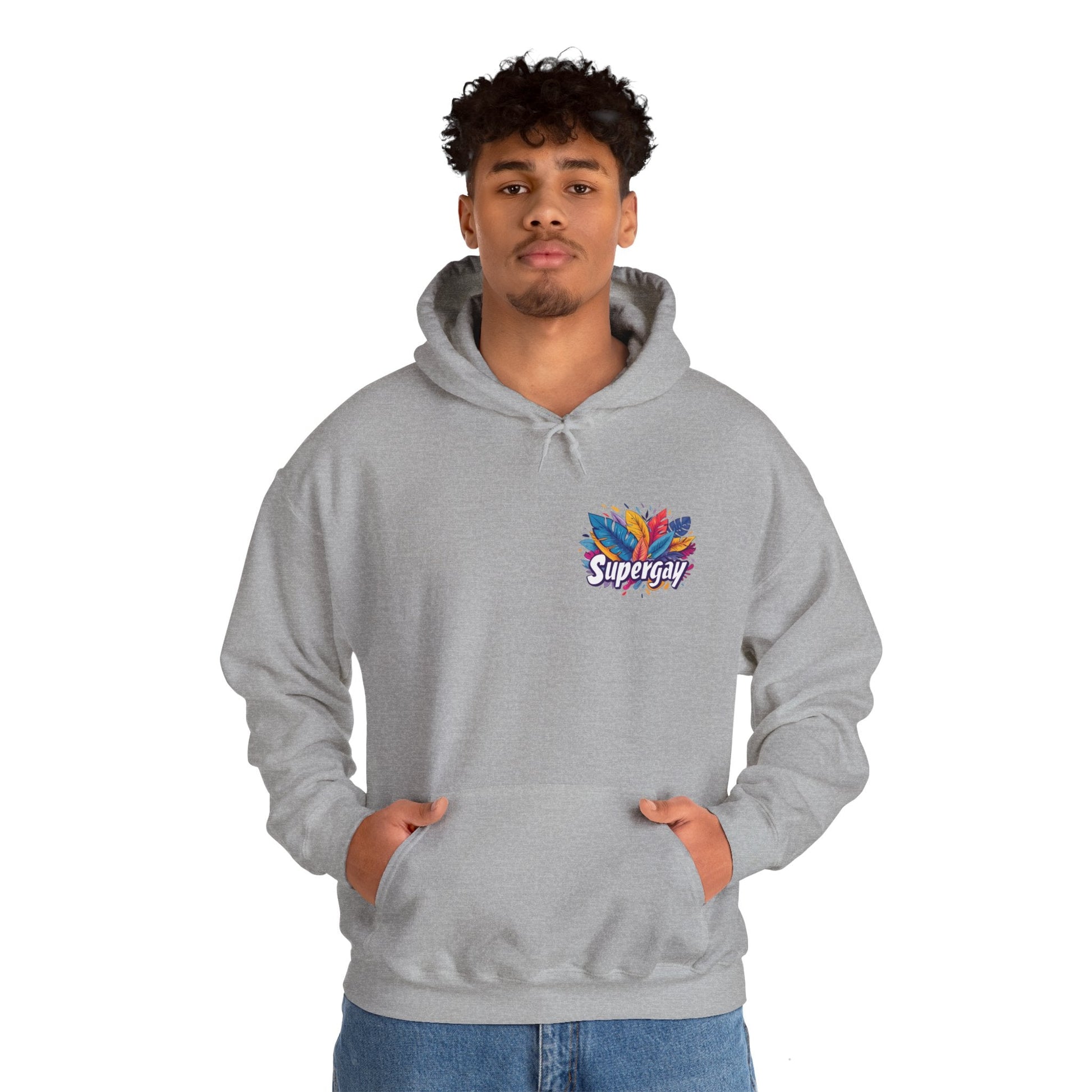 Show Your Pride with our 'Supergay' Unisex Hoodie! 🌈👕 This comfy hoodie features a heart-side 'Supergay' print, perfect for those who carry their pride close to their heart. Stay warm and super, no matter where you go! 💪❤️