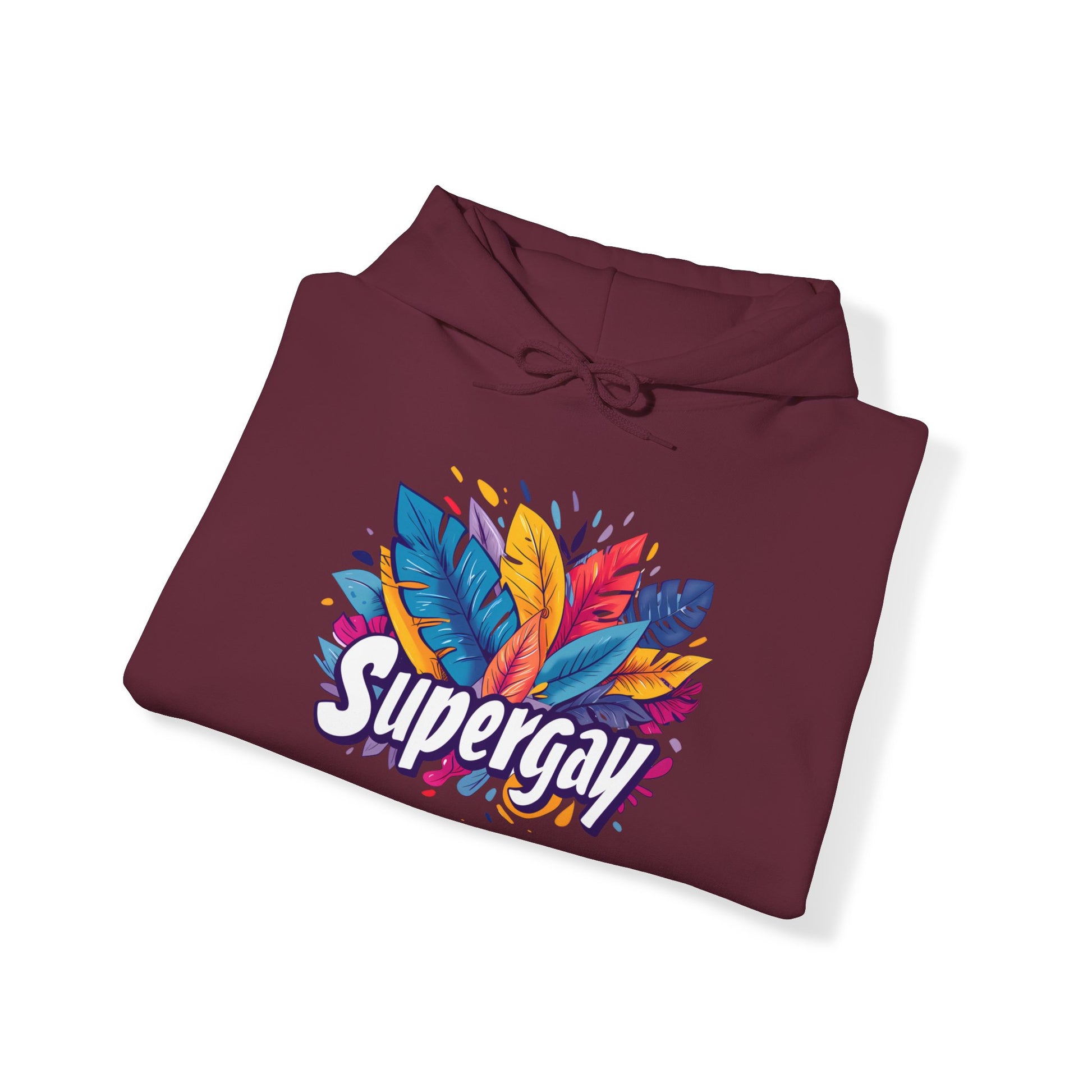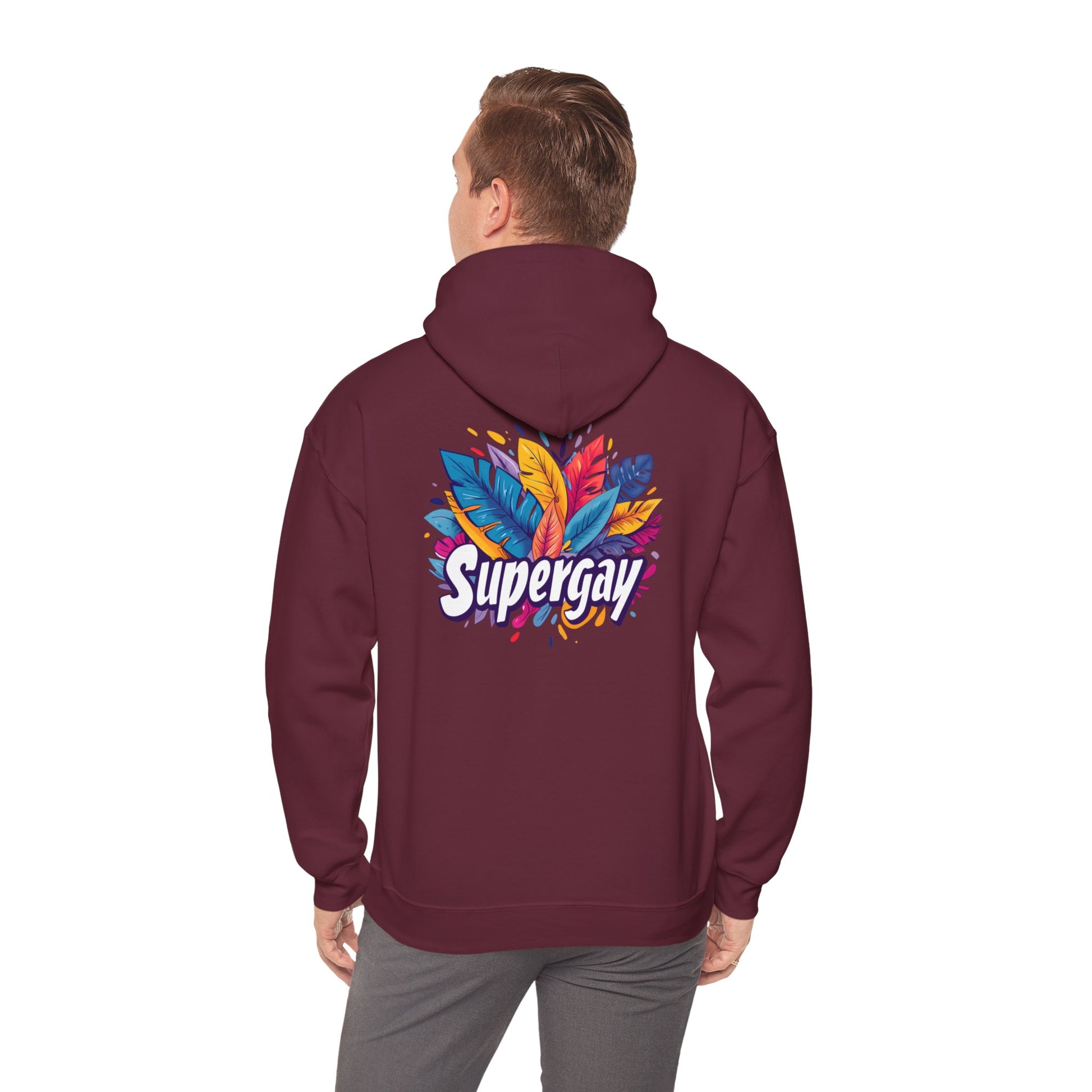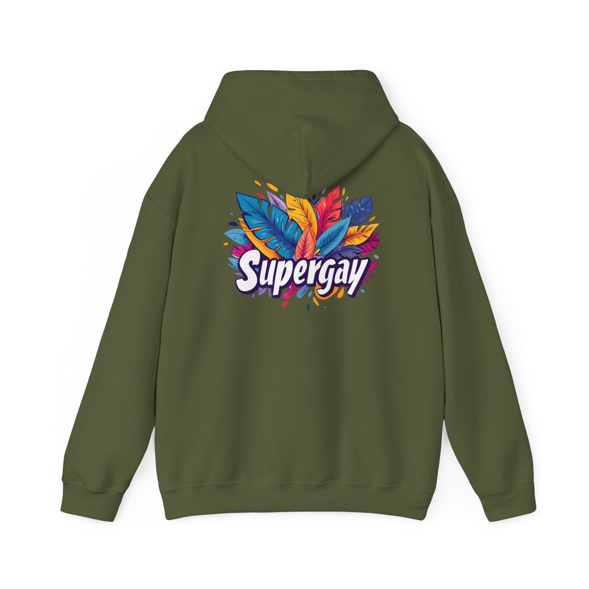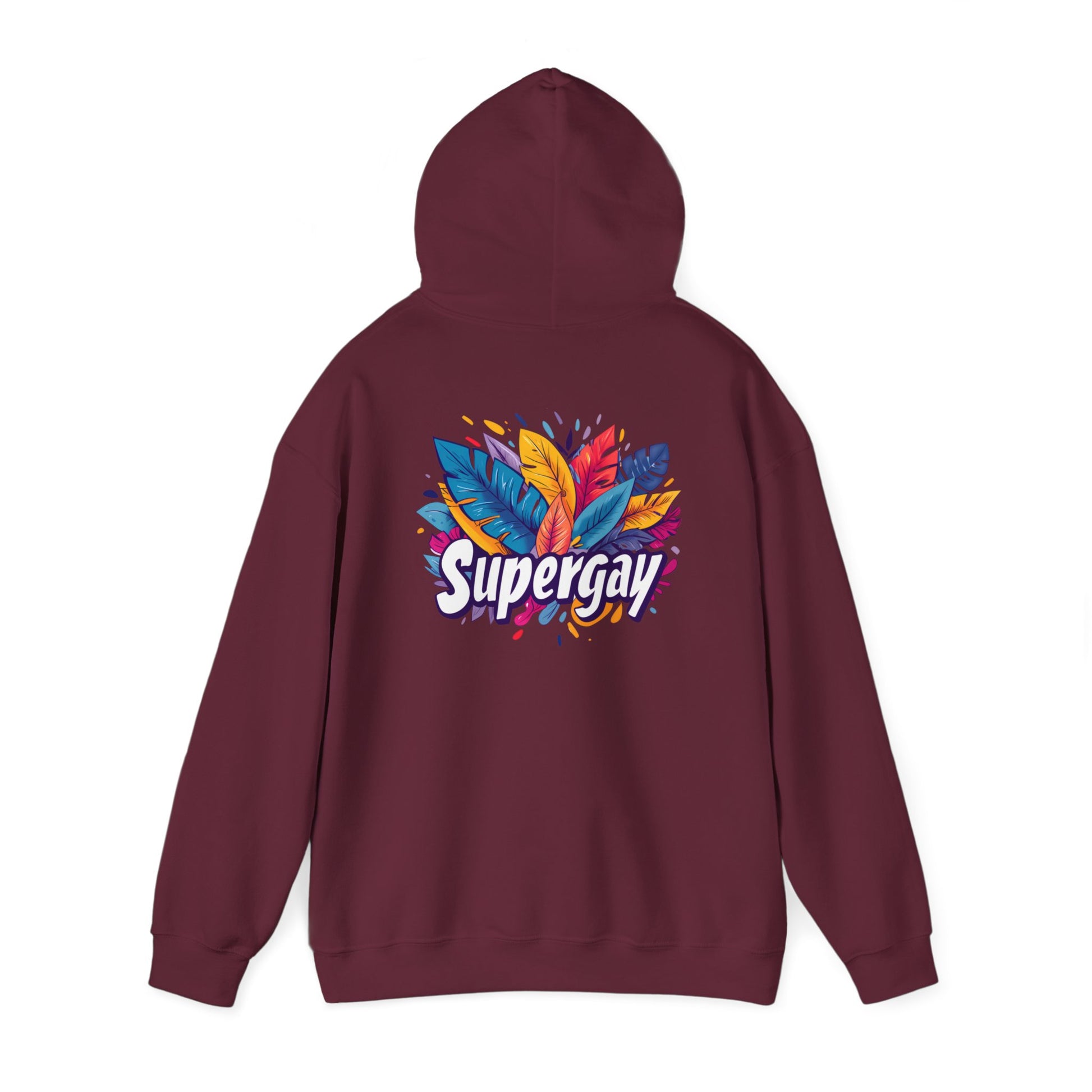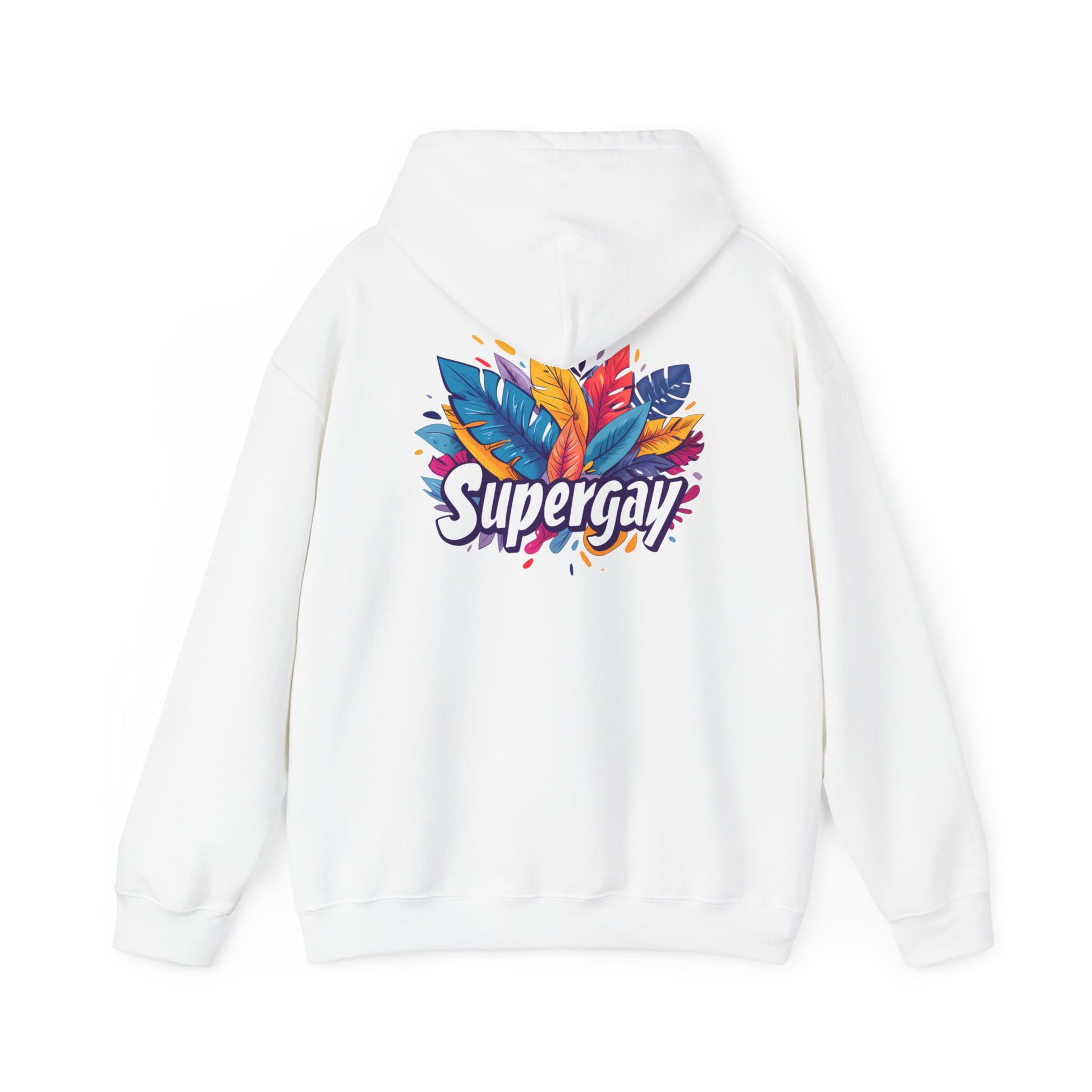 Stay Cozy and Proud with our 'Supergay' Hoodie! 🌈🍃 Wrap yourself in warmth and wear your superpower on your sleeve with this vibrant hoodie, adorned with 'Supergay' amidst colorful leaves. A bold celebration of identity and strength. Be super, be proud! 💪👕
