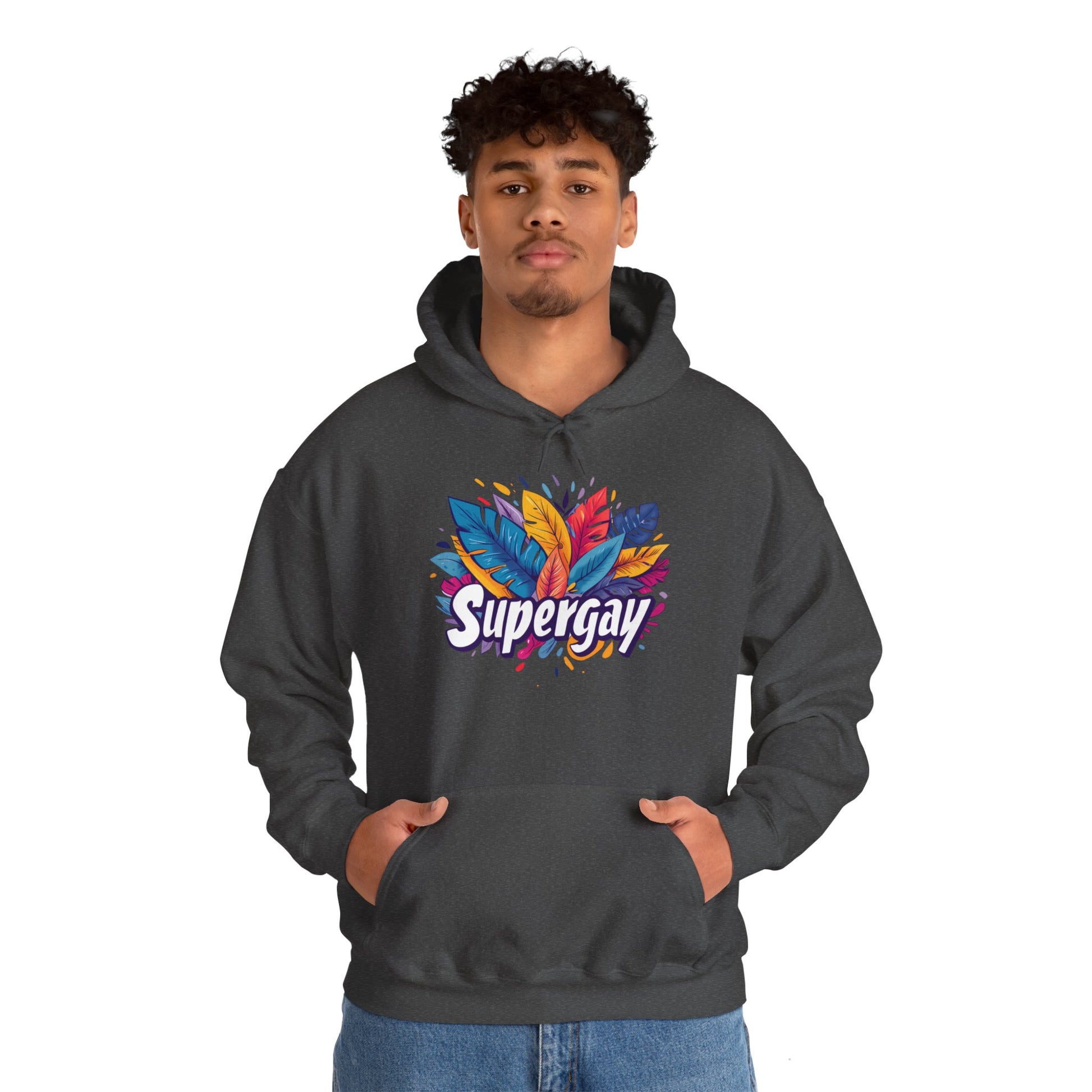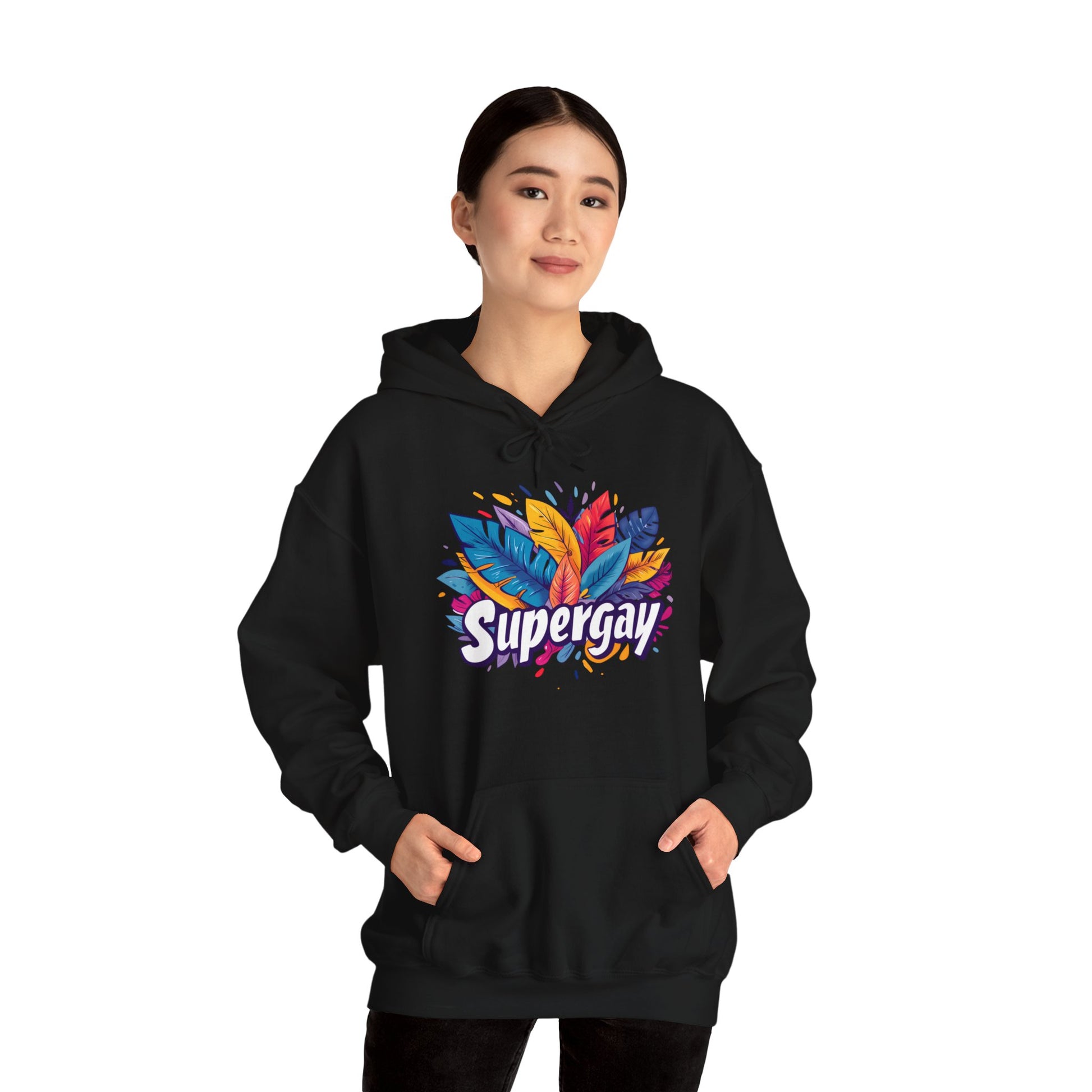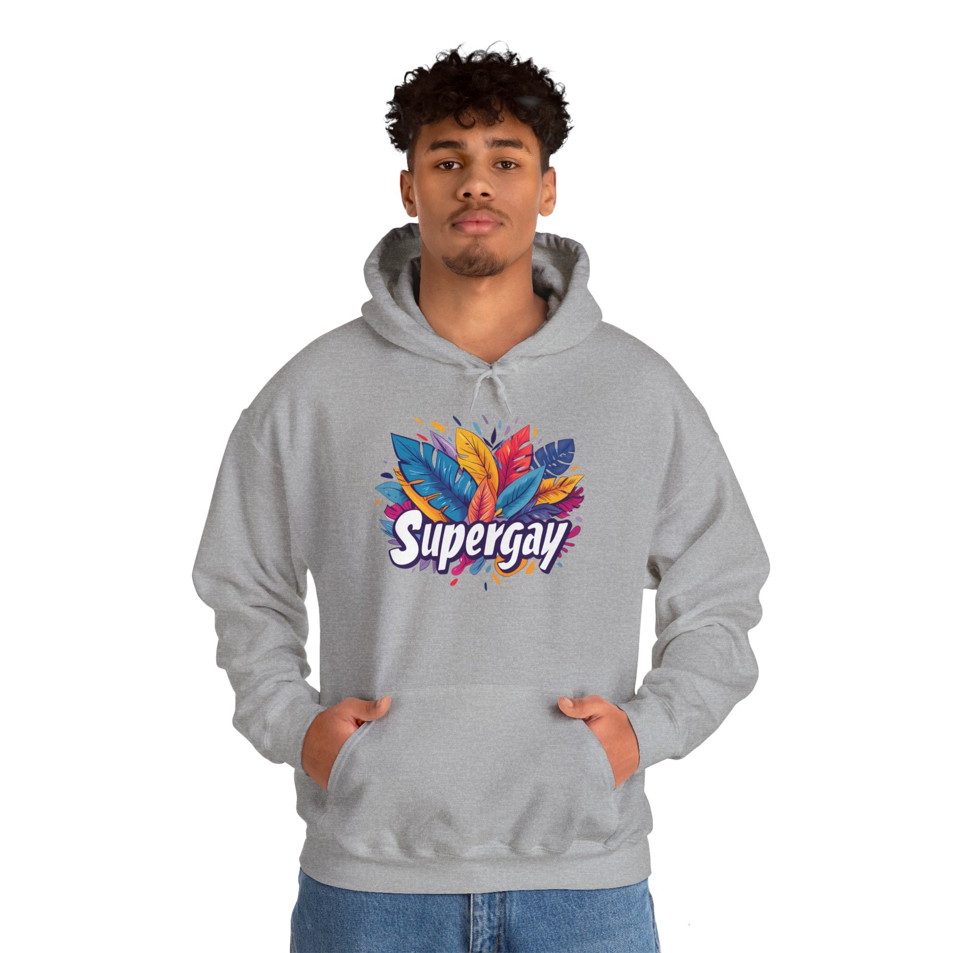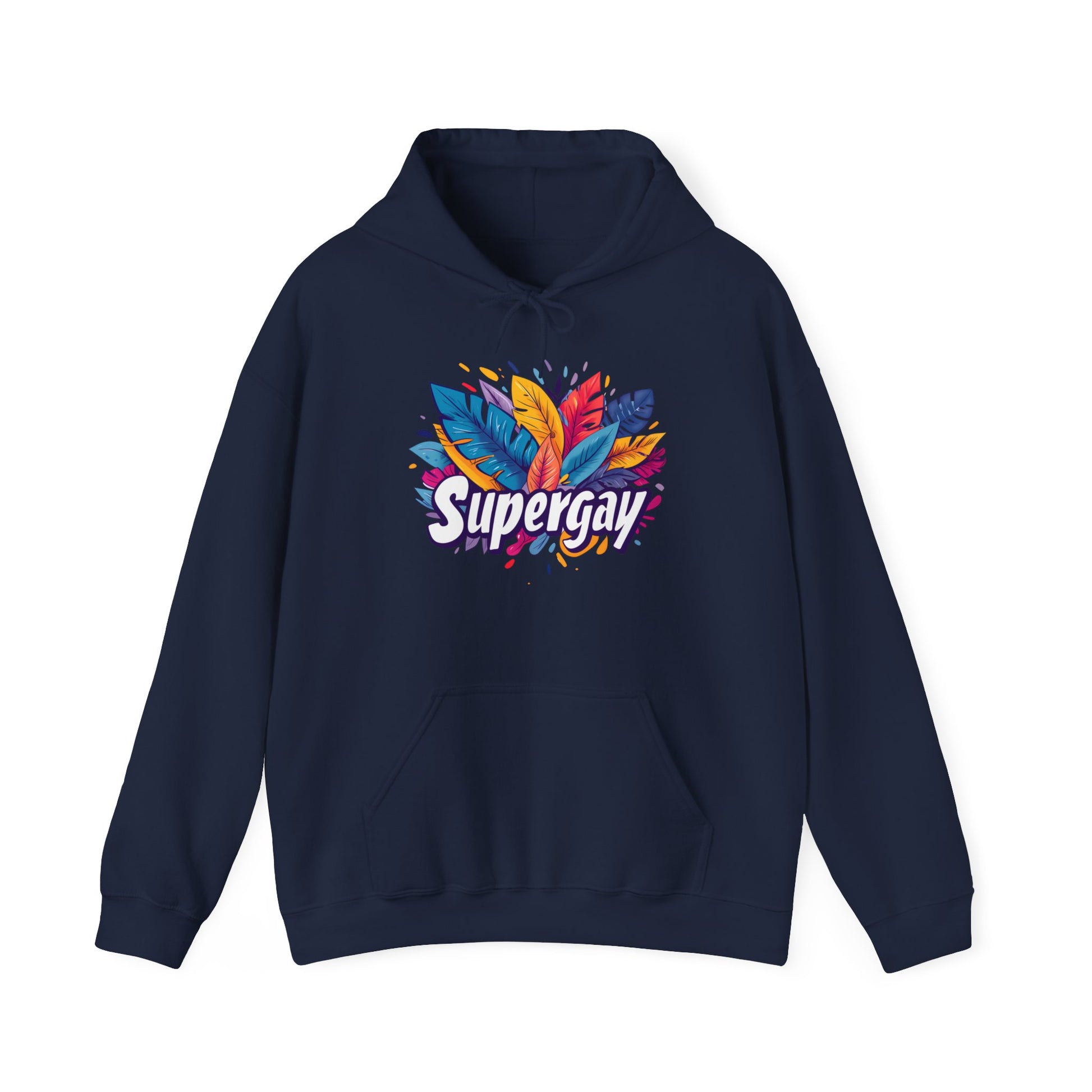 Stay Cozy and Proud with our 'Supergay' Hoodie! 🌈🍃 Wrap yourself in warmth and wear your superpower on your sleeve with this vibrant hoodie, adorned with 'Supergay' amidst colorful leaves. A bold celebration of identity and strength. Be super, be proud! 💪👕