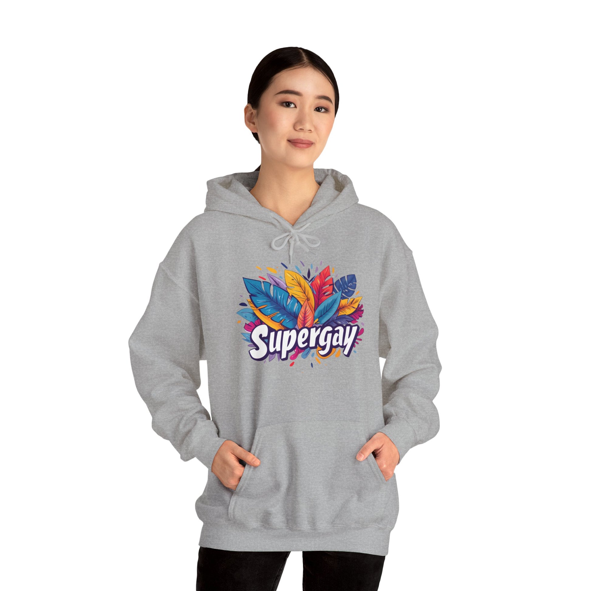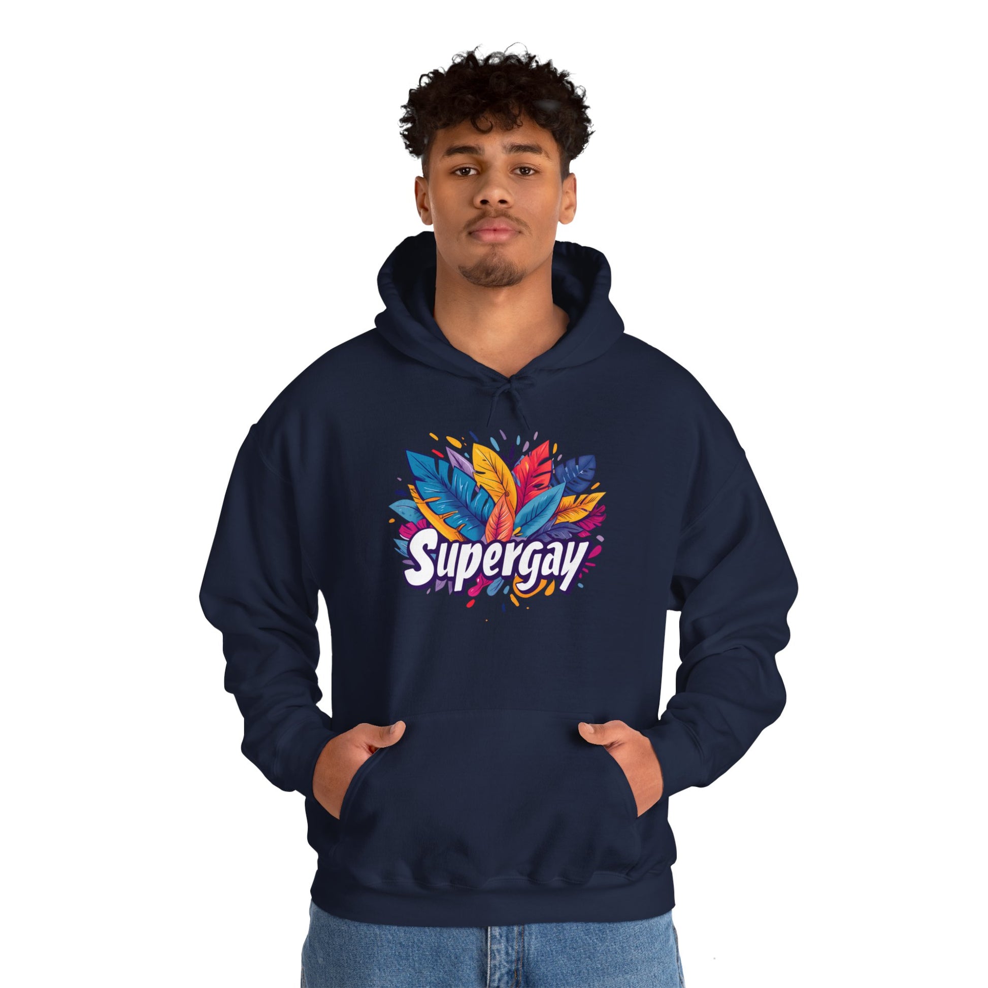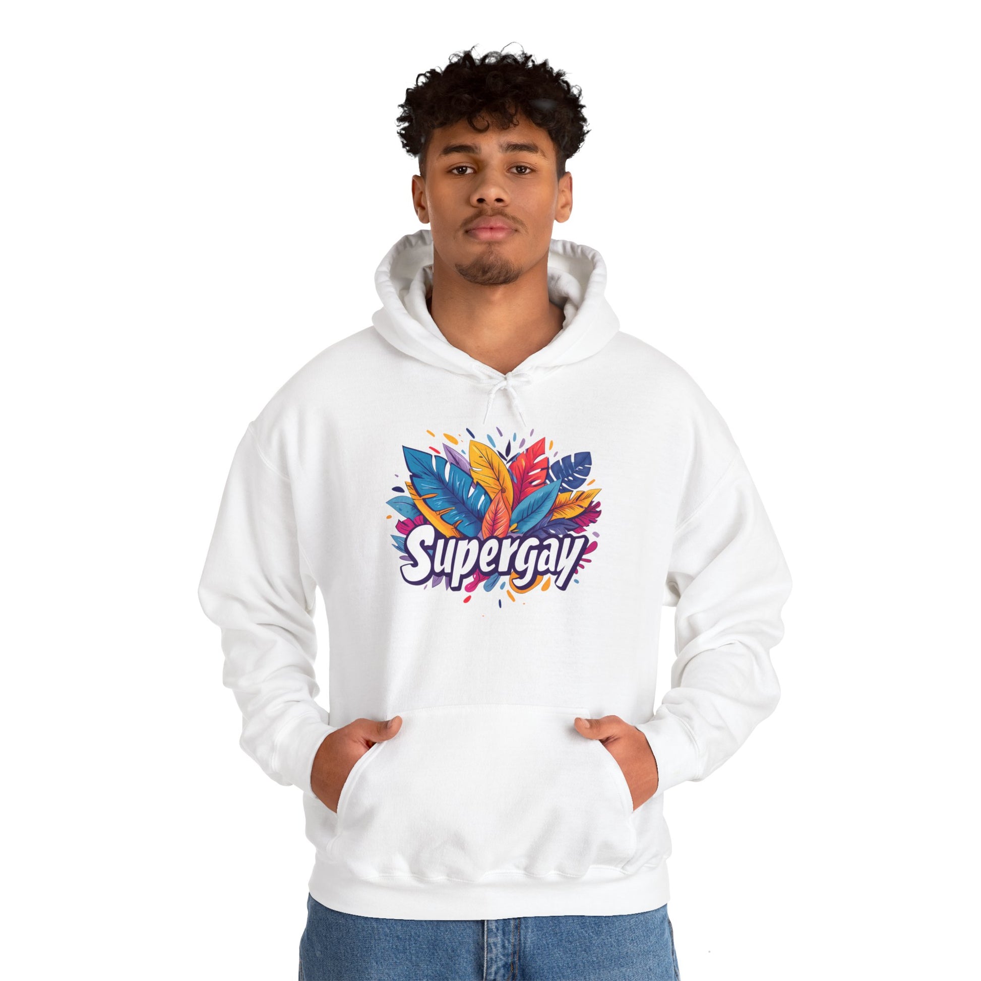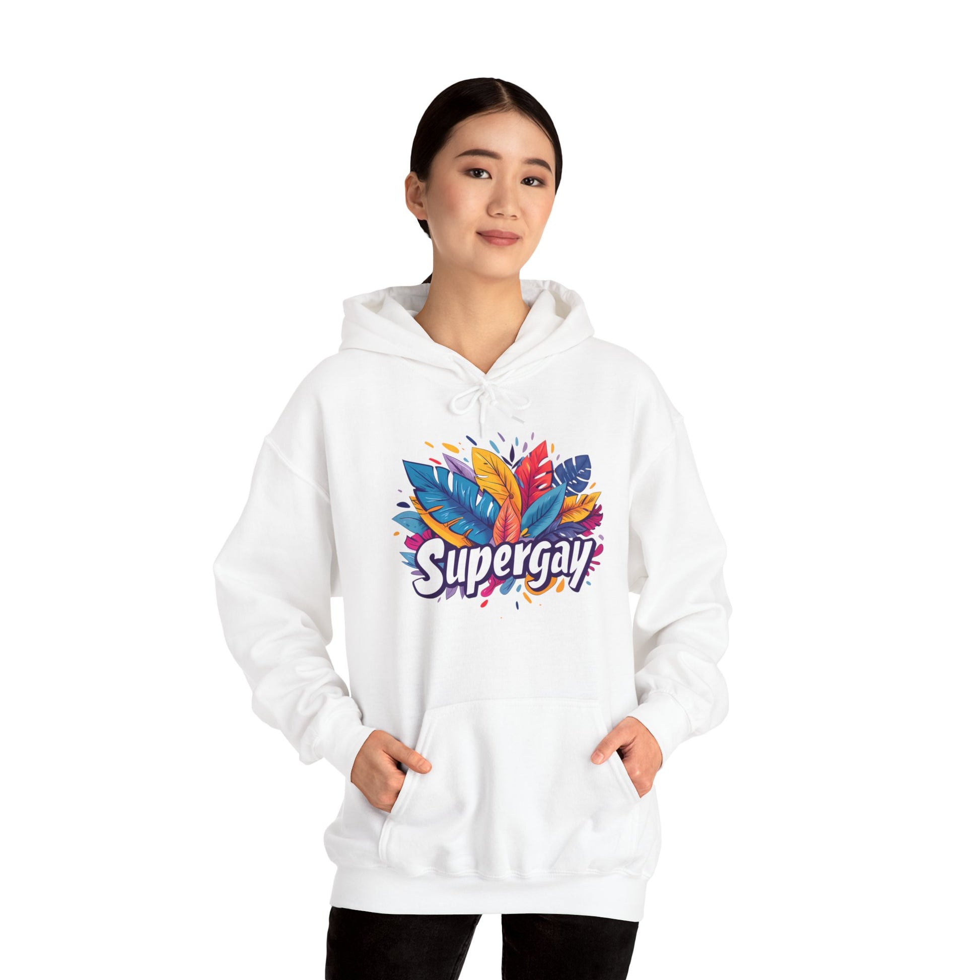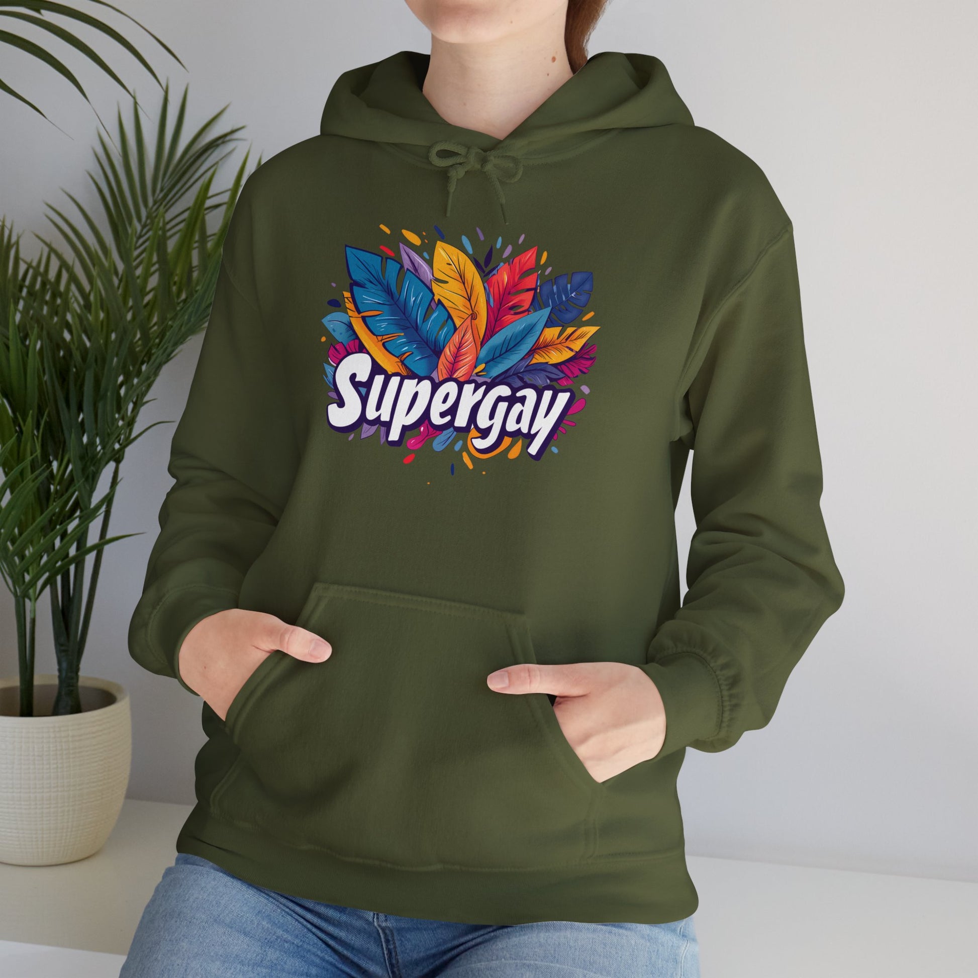 Stay Cozy and Proud with our 'Supergay' Hoodie! 🌈🍃 Wrap yourself in warmth and wear your superpower on your sleeve with this vibrant hoodie, adorned with 'Supergay' amidst colorful leaves. A bold celebration of identity and strength. Be super, be proud! 💪👕
