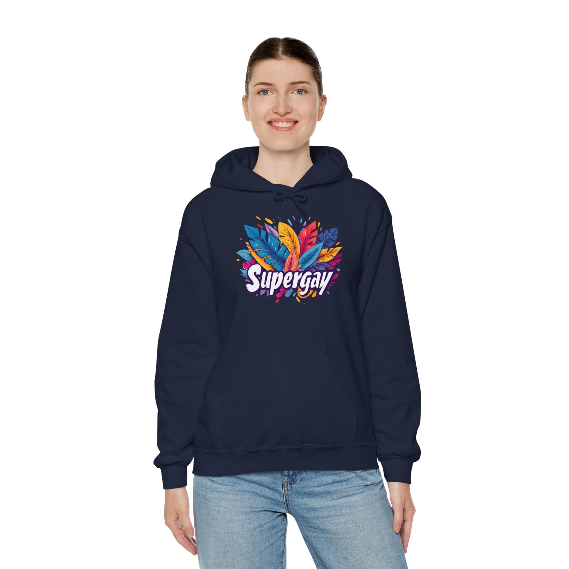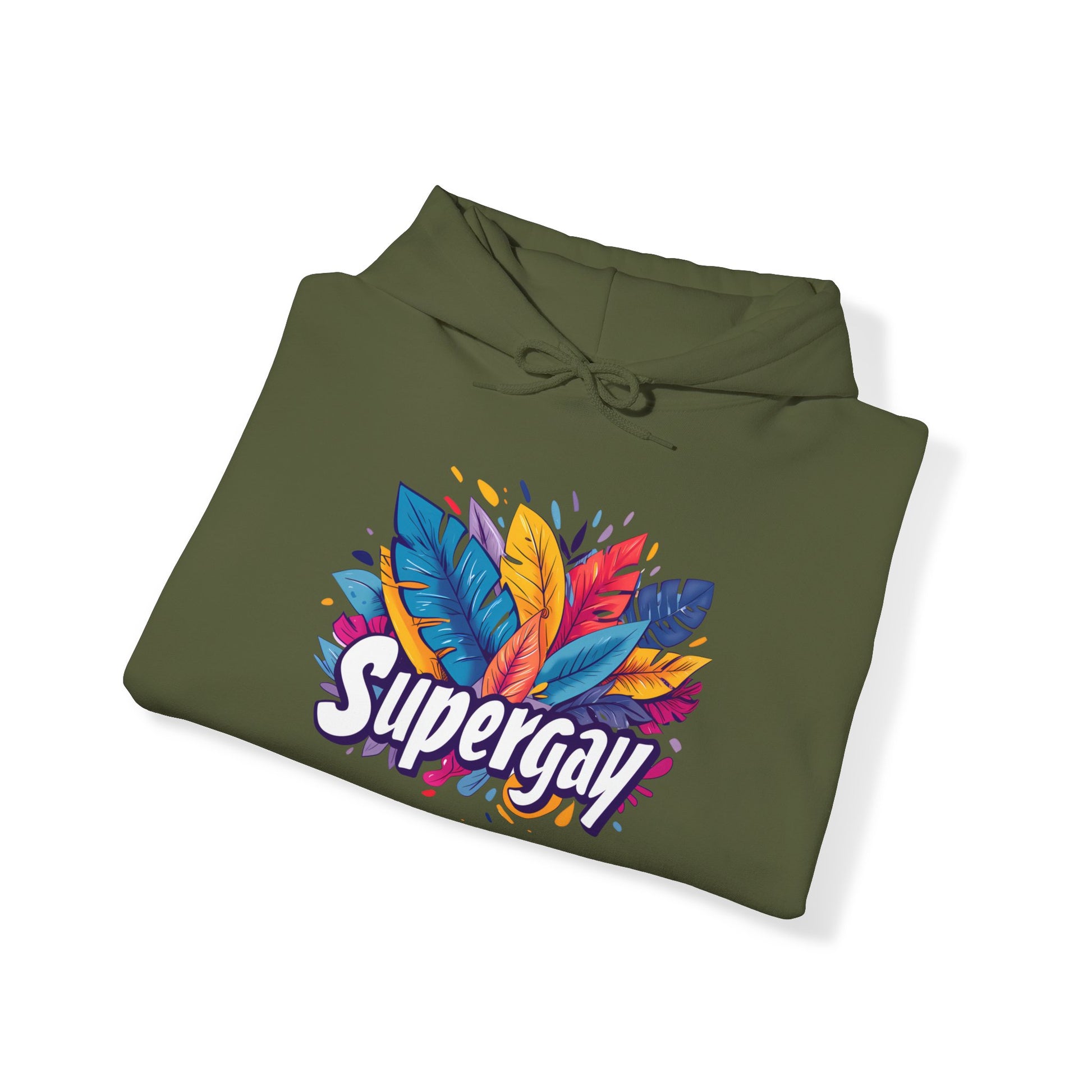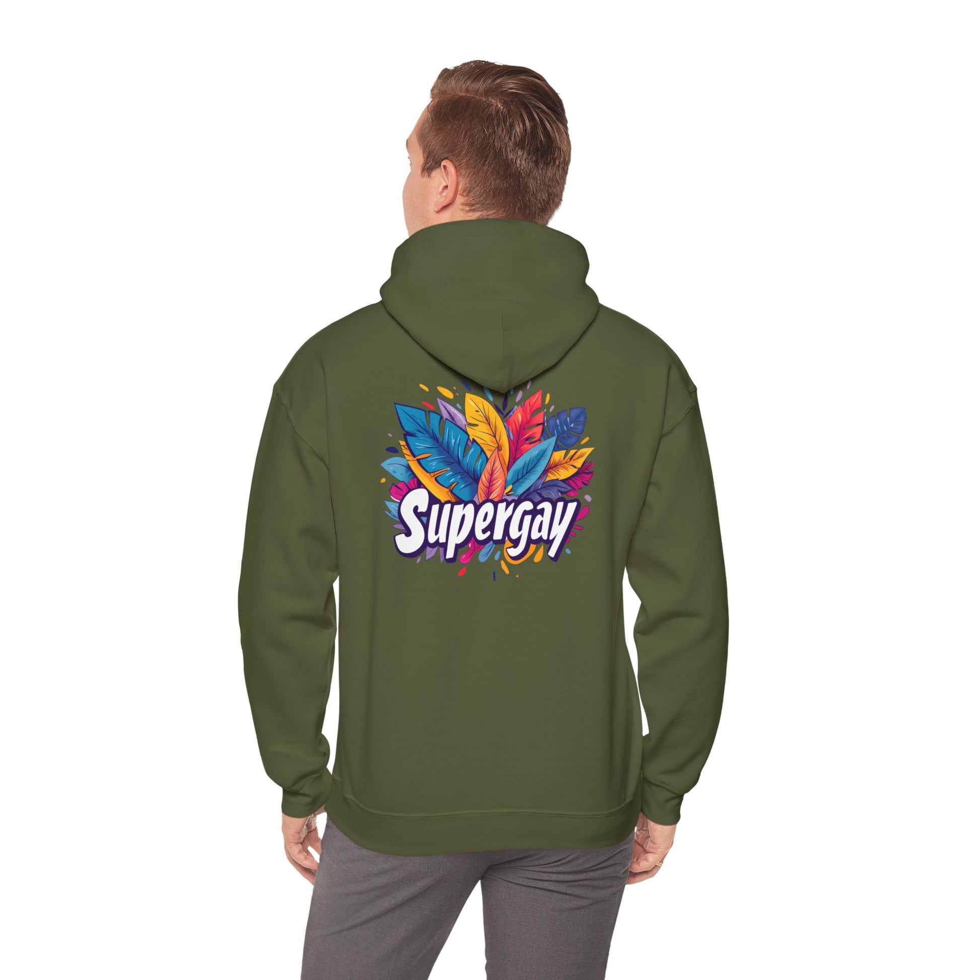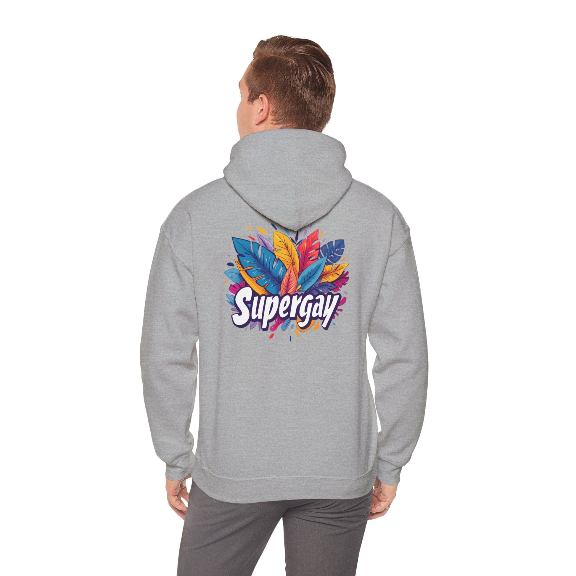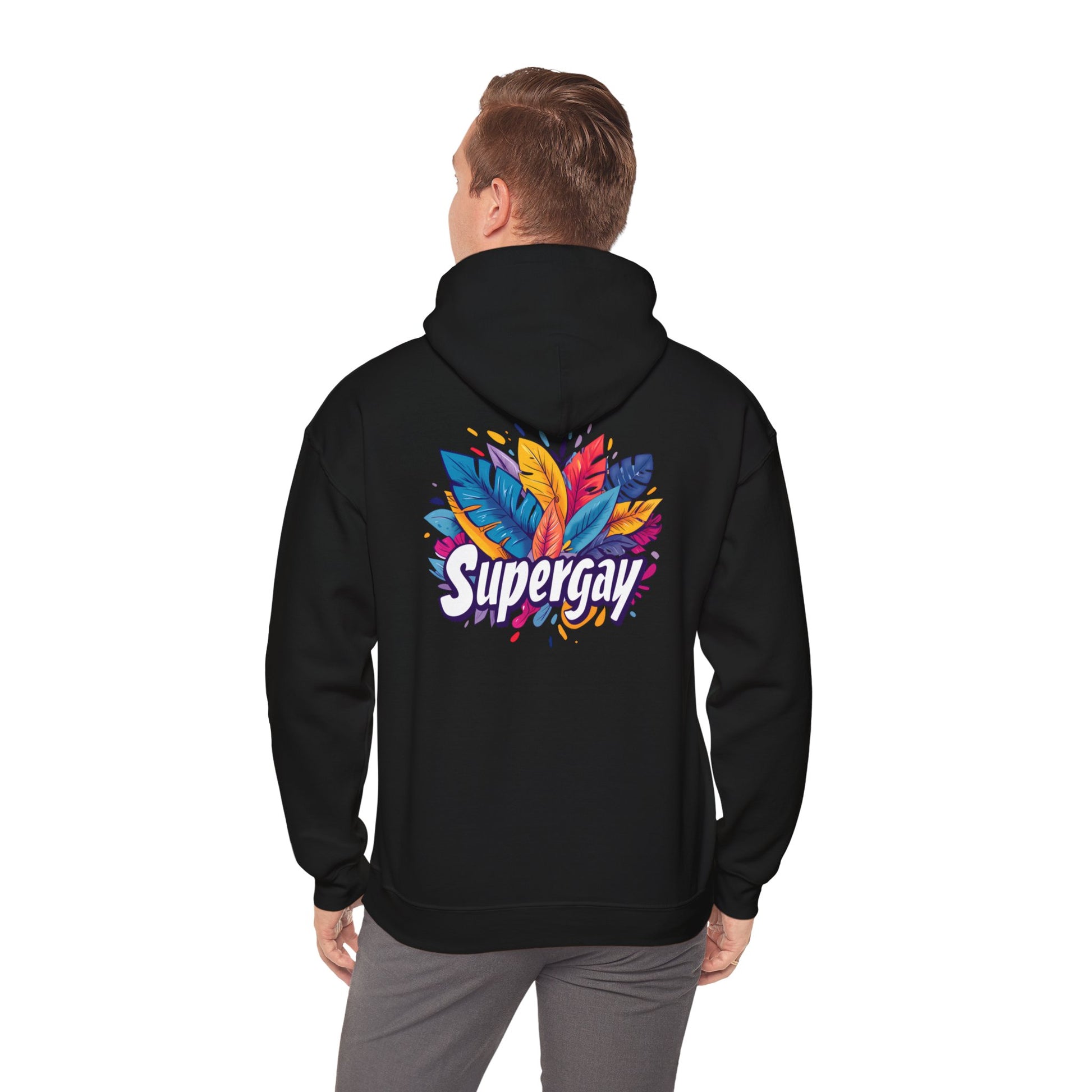 Stay Cozy and Proud with our 'Supergay' Hoodie! 🌈🍃 Wrap yourself in warmth and wear your superpower on your sleeve with this vibrant hoodie, adorned with 'Supergay' amidst colorful leaves. A bold celebration of identity and strength. Be super, be proud! 💪👕
